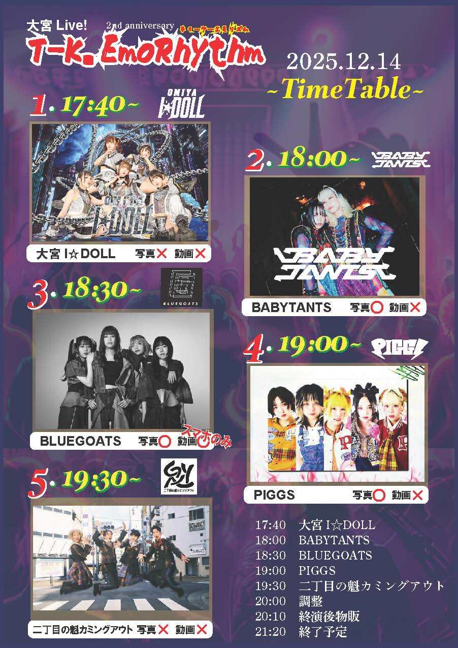 出演:PIGGS / 二丁目の魁カミングアウト / BLUEGOATS / BABYTANTS / 大宮 I☆DOLL