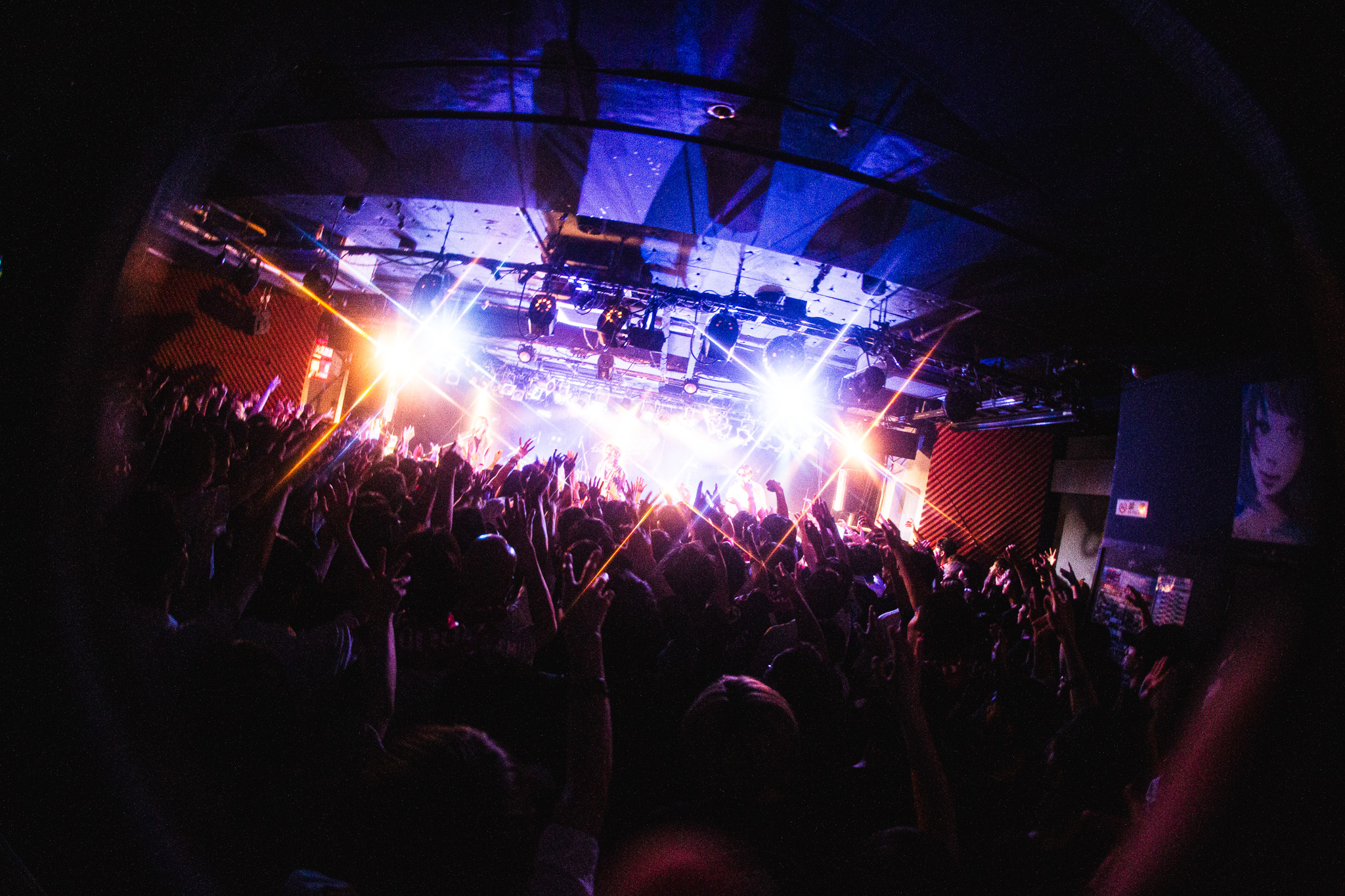 先行は Dannie May。まずどこか南の孤島のジャングル感のあるSEに引き込まれる。少しミステリアスでもあるから、この島に眠る謎を解明すべく、我々探検隊は奥地へ向かった…的なワクワク感と没入感を与えてくれる。そしてその先にいたのは、ライブ翌日が誕生日の成瀬太智(Sup.Dr)、フードを被った田中タリラ(Vo.Key)、白い衣装のYuno(Vo.Kantoku.)、紳士的に挨拶をしたマサ(Vo.Gt)。なるほど。このキャラクター豊かな彼らをヒントに謎を解明するのかー!とか思っていると、1曲目『玄ノ歌』からスタート。「歌って、踊って、騒いでいこうぜー!」という言葉通り、フロントの3人は声で、動きで、演奏で会場を煽って早速熱狂の輪を作る。サビの<ラッキーボーイ>のフロアの掛け声も曲が進むたびに大きくなり「いいね!」と返すマサ。続けて色気あるギターを鳴らして始まったのは『東京シンドローム』。変わらずフロアのクラップが響き渡り、サビ前に田中の「クレストついてこい!」の合図で、一気に拳が上がる。