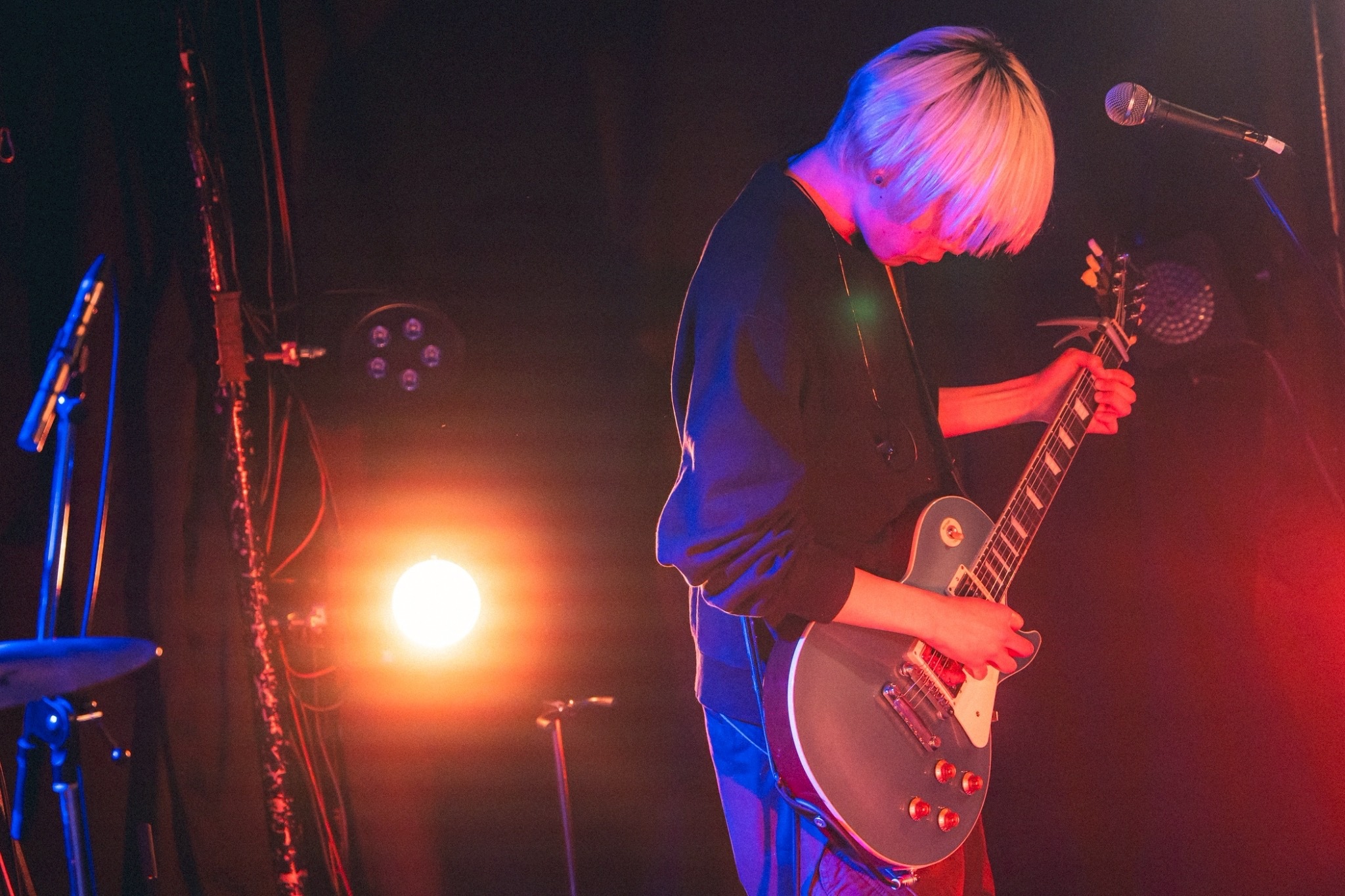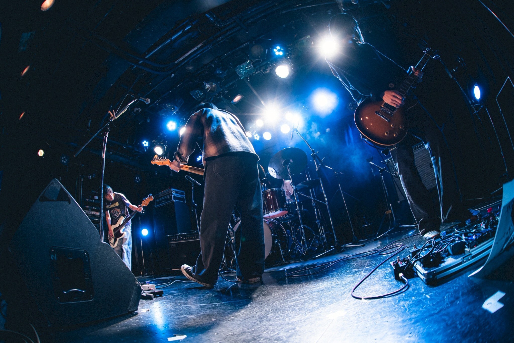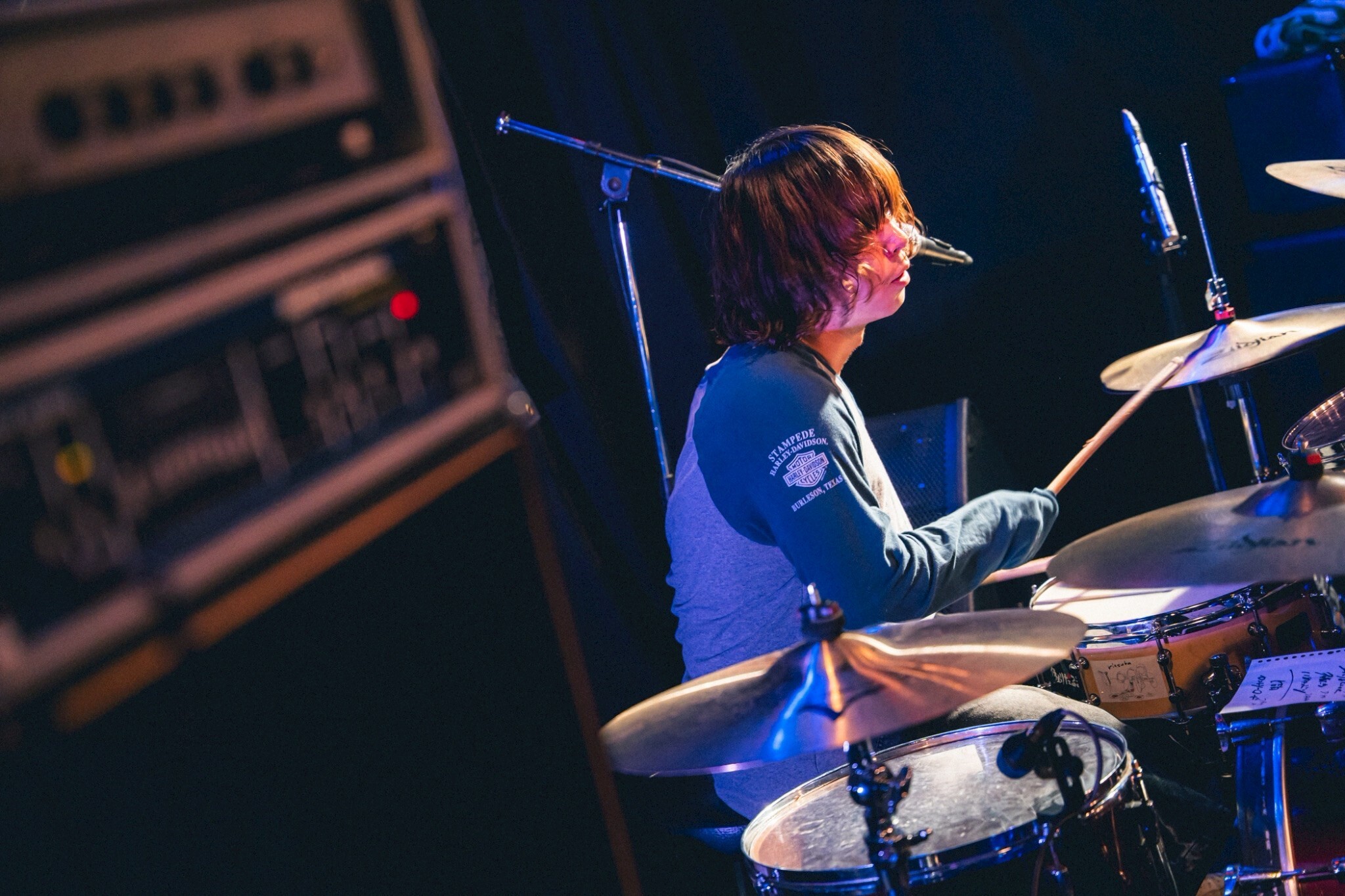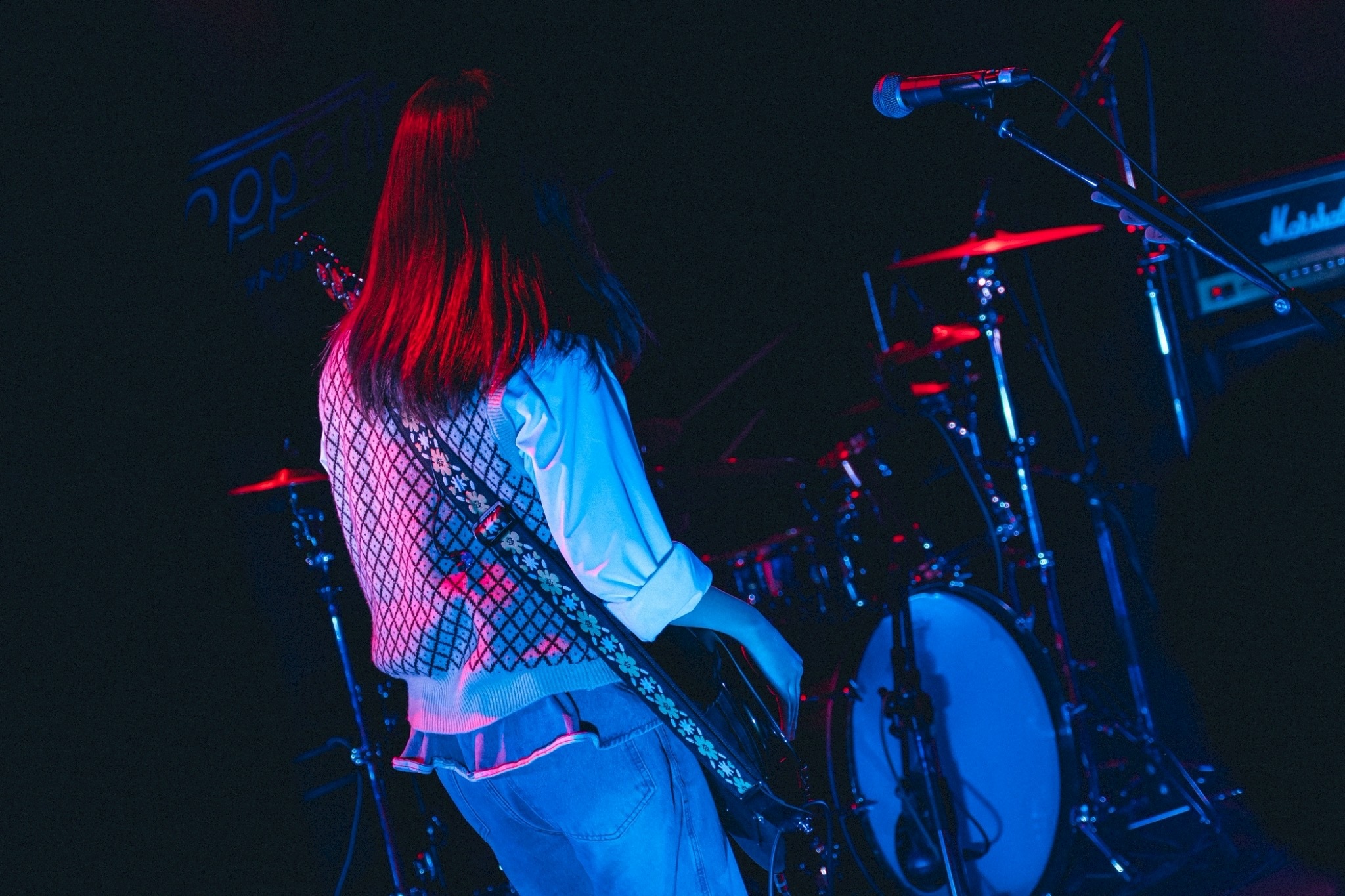 彼らのアンサンブルはシンプルだがスリーピースの均整が高精度で、ふとしたブレイクの瞬発力も大きな武器となっている。なお(Dr)のパワフルなビート、たいち(Gt&Cho)の歯切れの良いブラッシングミュート、りおんの挑発的なボーカルが渾然一体となって迫る「無敵少女」は、さながら「邦ロック版レッチリ」だ。MCによればたいちは本番直前にぎっくり腰になってしまったそうだが、高まるアドレナリンでアクシデントを感じさせないパフォーマンスを見せつける。