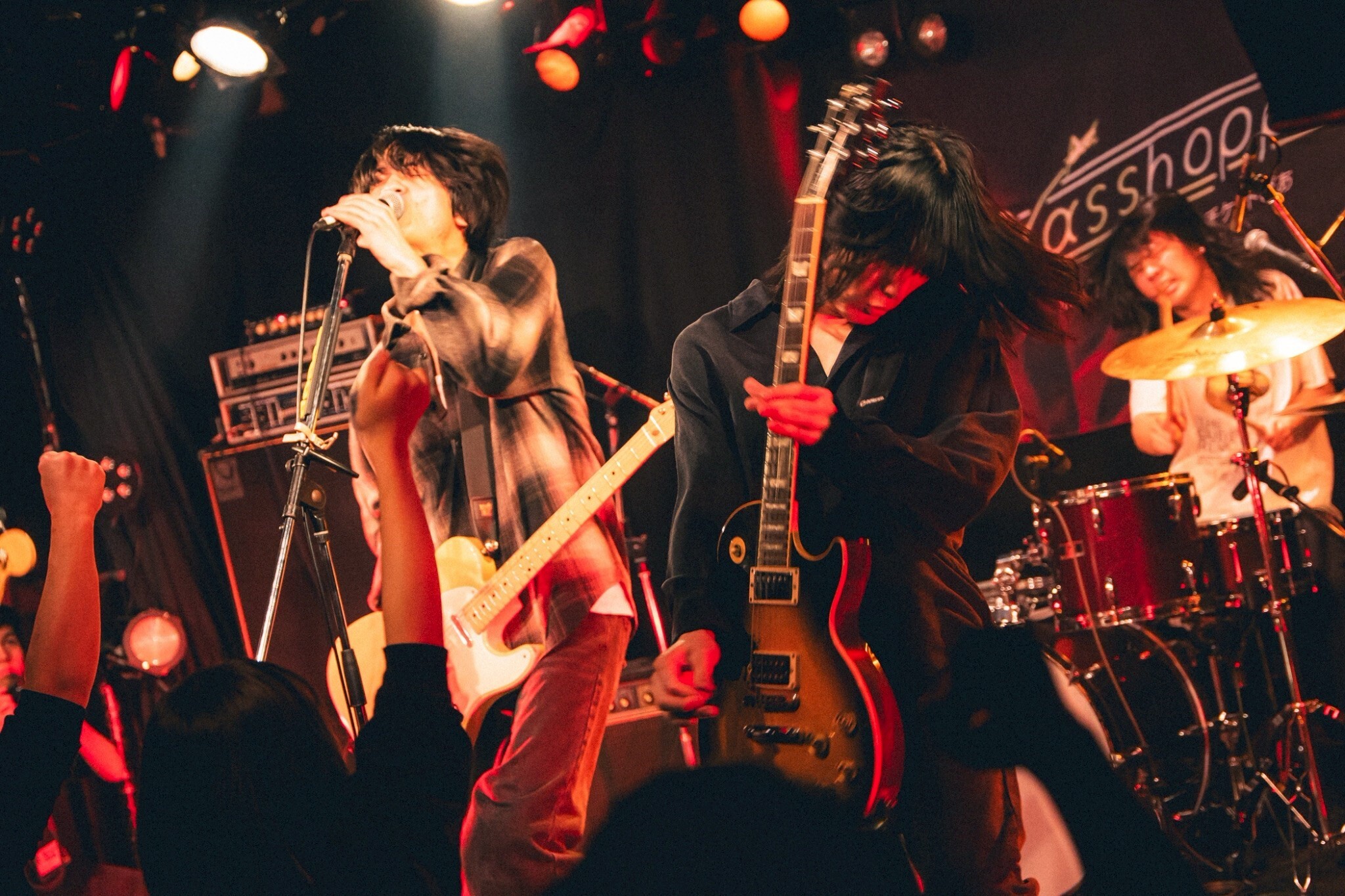チケットぴあのロックを愛する有志社員が若手バンドたちを応援するために立ち上げられ、関西編『Grasshopper WEST』やサーキットイベント『Jump Higher』の開催など領域を拡張させながら回数を重ねてきた同イベント。2025年を締めくくる今回は、愛知・名古屋出身の至福ぽんちょ、広島・世羅郡出身のNOIMAGE、東京・世田谷出身の「夜と同時に、動き出す。」と全国各地から飾らないサウンドを鳴らす3組が集った。