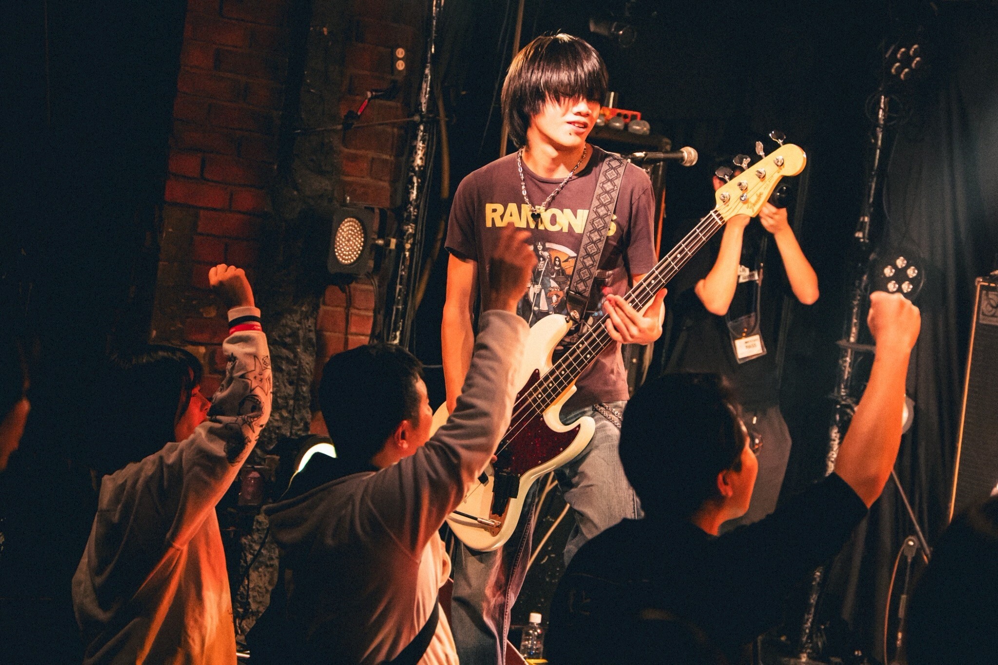 コロナ禍の鬱憤を歪んだギターに乗せて解き放つような「この話の続きは居酒屋で」では、叫んでもかき鳴らしても収まりきらない激情が、メンバーの身を激しく躍動させる。「俺の友達が、仲良くなるには音楽が一番手っ取り早いって言ってた。俺らと仲良くしようぜ」という言葉から間髪入れずに「卒業式出るの忘れた」へ。失敗を繰り返して取り戻せないものが増えていく中で、激しい焦燥が前へ前へとバンドを駆り立てていく。