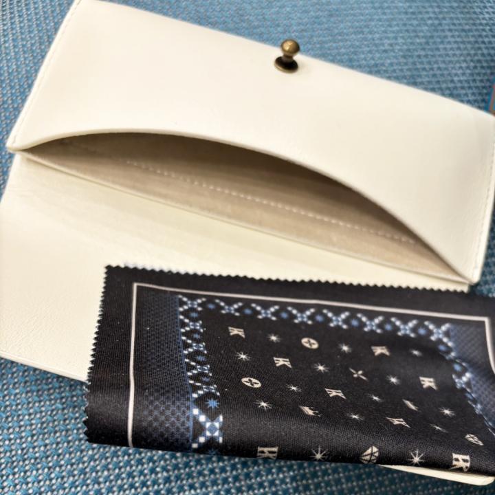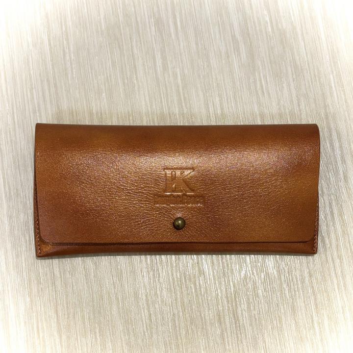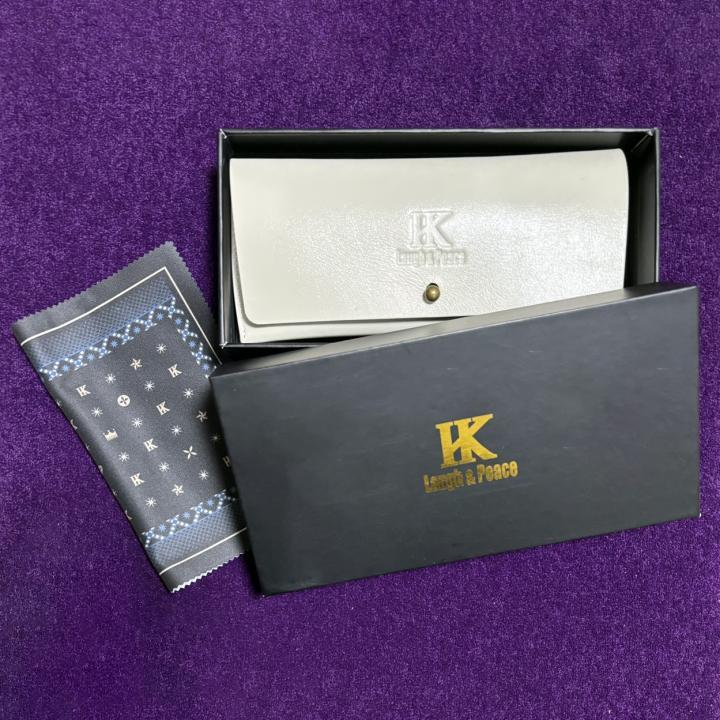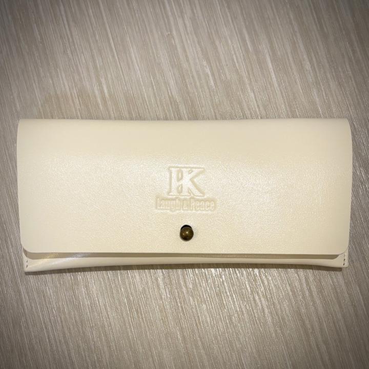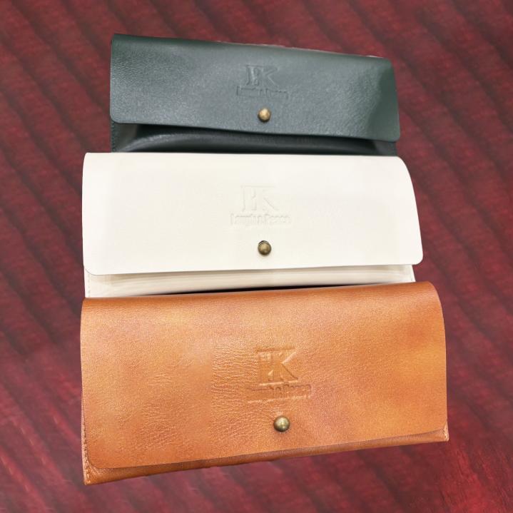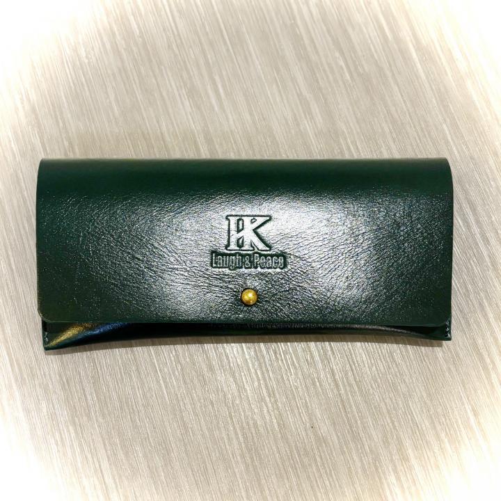 加藤和樹ロゴの入った本革メガネケース。本革製。色はアイボリー、グリーン、ブラウンの3色。オリジナルメガネクロス&パッケージ付。