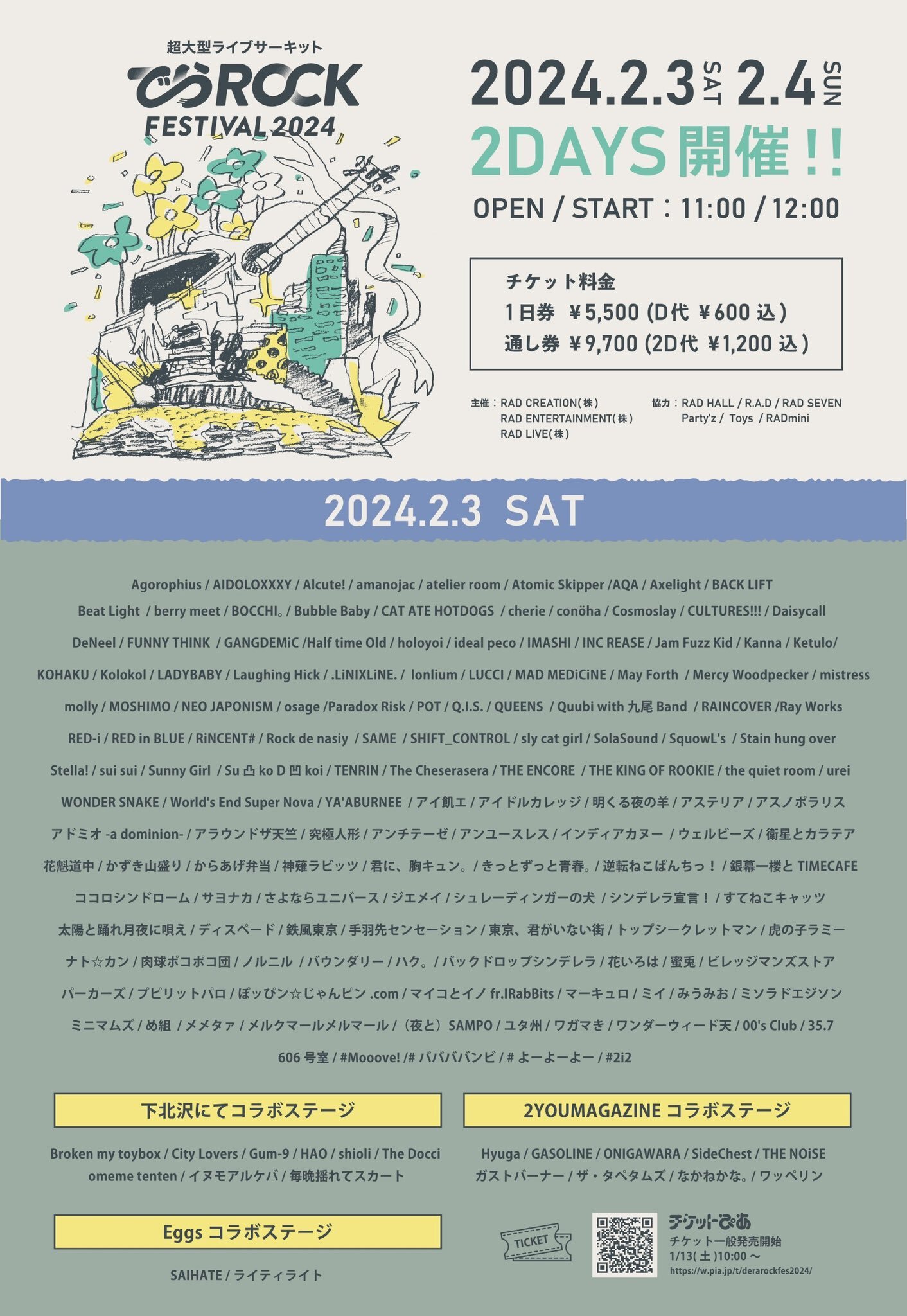 「でらロックフェスティバル2024」 2024.01.05更新 LIVE 名古屋冬の超大型サーキットフェス「でらロックフェスティバル2024」出演決定!なかねかな。は【2月3日(土)17:00〜 CLUB ROCK'N'ROLL ※2YOUMAGAZINEコラボステージ】にて出演いたします!【チケット一般販売】受付期間:1月13日(土)10:00~https://t.pia.jp/pia/event/event.do?eventCd=2335414