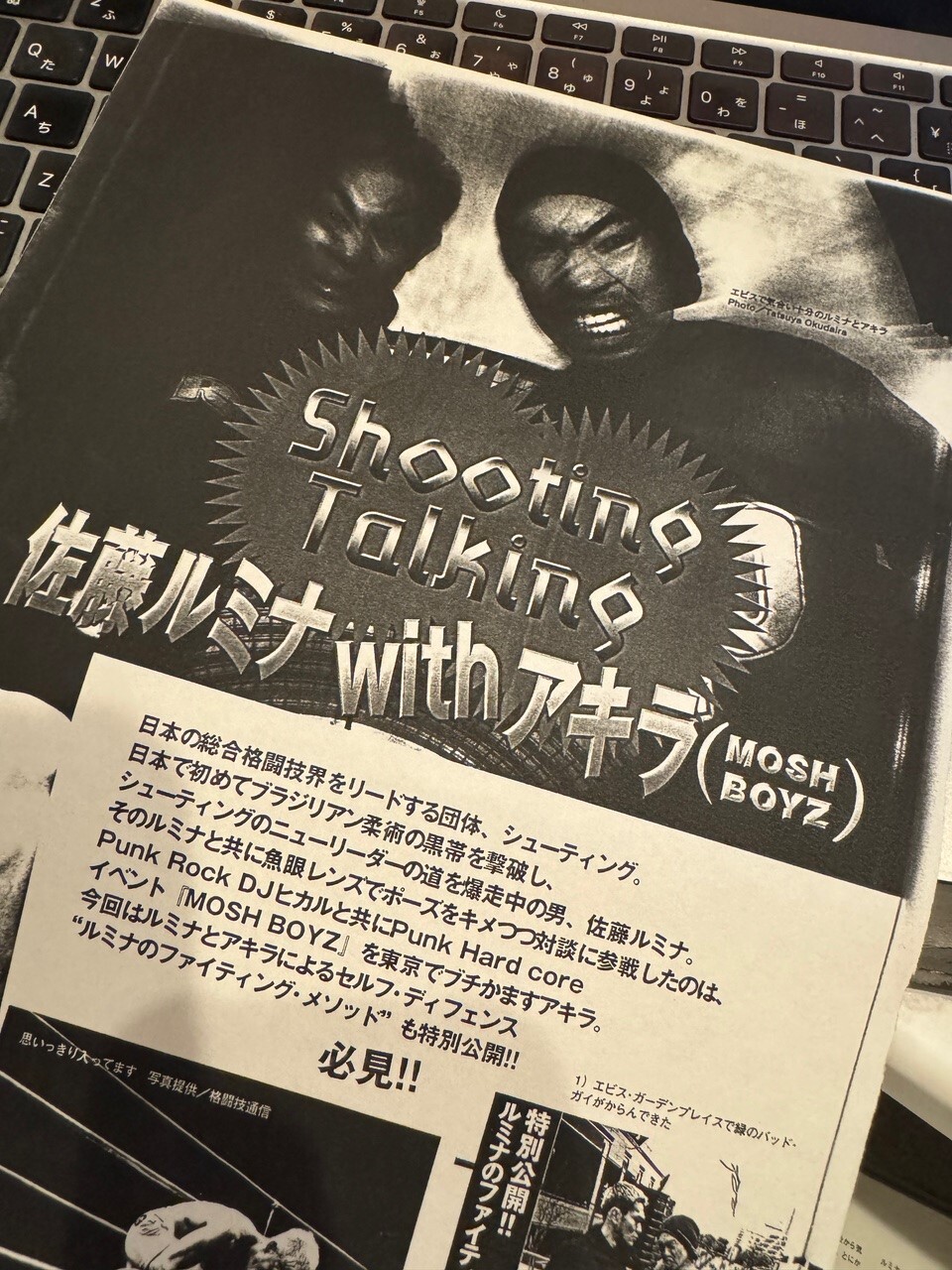 当時杉田さんは、前職のちょっと怪しげな会社でサプリメントを扱っていて「波乗りをやってる格闘家を広告に使いたい」と、修斗プロモーター“なにわの黒豹”坂本一弘さんに連絡をしたのがきっかけ。