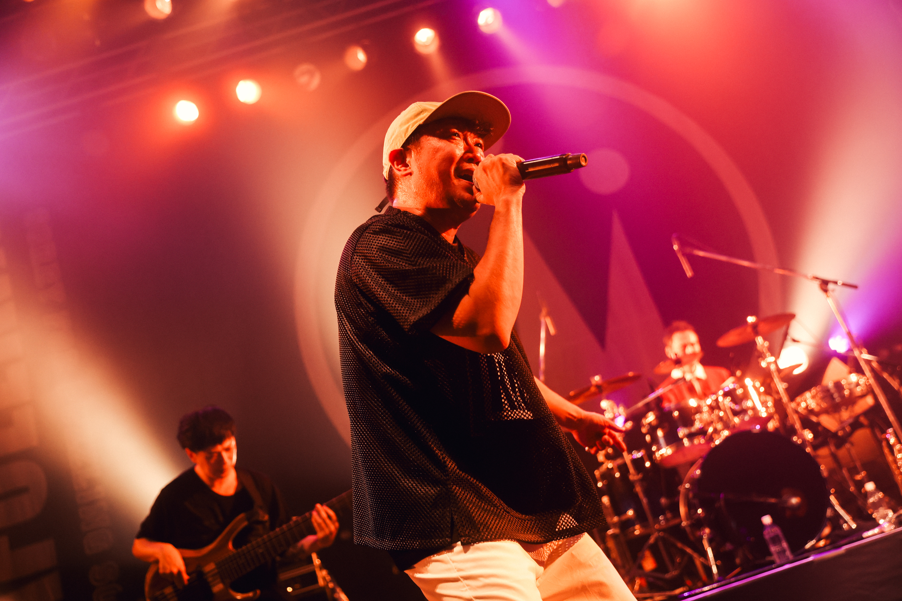 そのまま畳み掛けるように“ワン、ツー!”のコールのたびに興奮が跳ね上がっていく「Beetle Knows Himself」、大合唱チューン「Brighten up」へと突入すると、ステージもフロアも前のめり。曲終わりのTGMXのサンキュー!の声に、会場の歓声と拍手、さらに興奮たっぷりの観客の声が響きわたった。