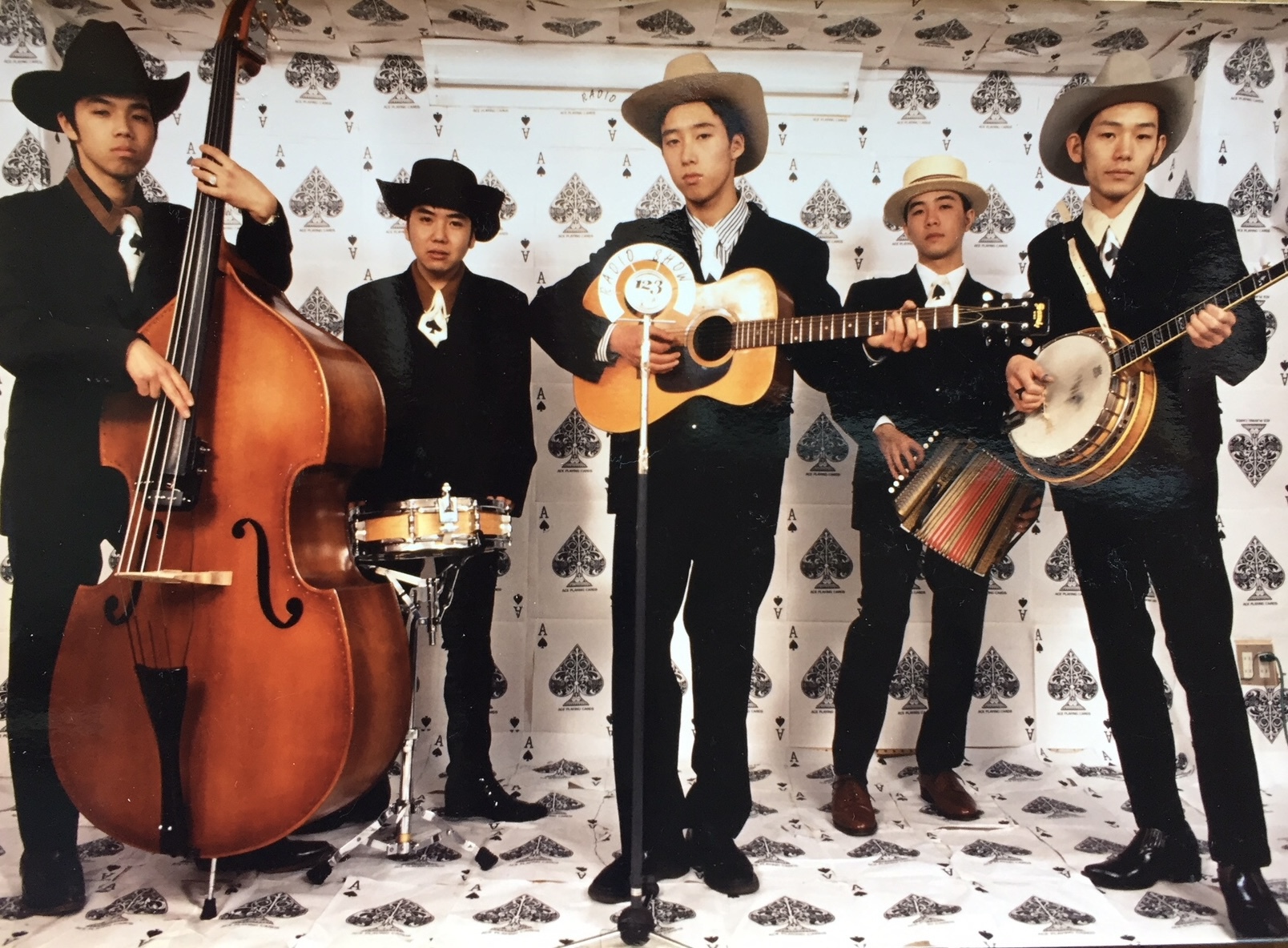 連絡くれた何人かに会ってはみたけどピンと来なく途方に暮れていると、一通のハガキが届き「 こちらギター兼バンジョー、ドラム、ピアノ兼アコーディオン。ウッドベース探してます!連絡下さい!! 」的な文章にちょっと惹かれ、書いてあった電話番号に連絡してみたら大きめなBGMが騒がしい中、チョット酔っ払った感じの男の声で「 連絡ありがとう!俺達もバディーホリーとエディーコクラン大好きでさぁ〜っ!今度新宿のアルタの前で待ち合わせして話そうよっ! 」とトントン拍子に話が進み、待ち合わせ当日のアルタへ向かった。