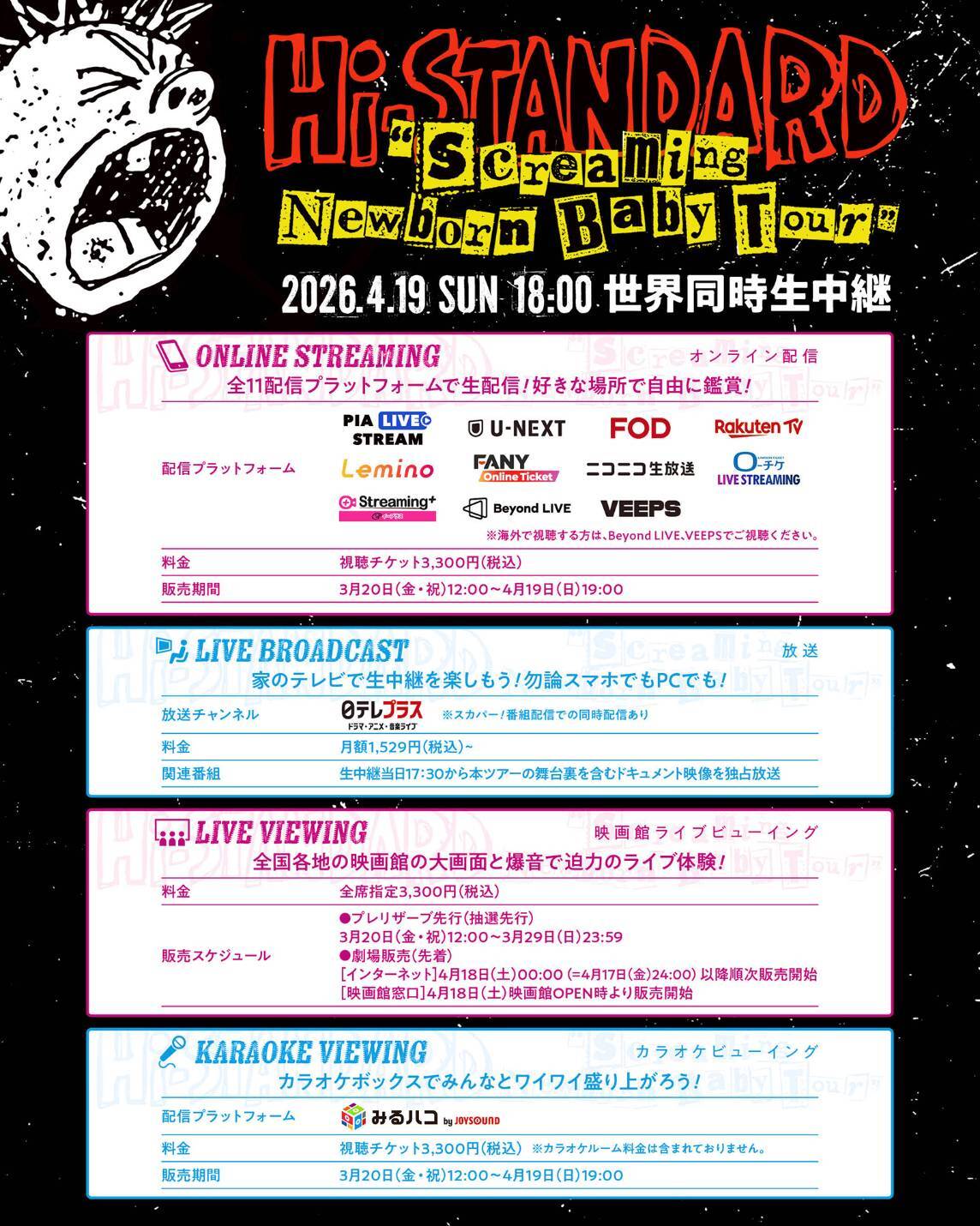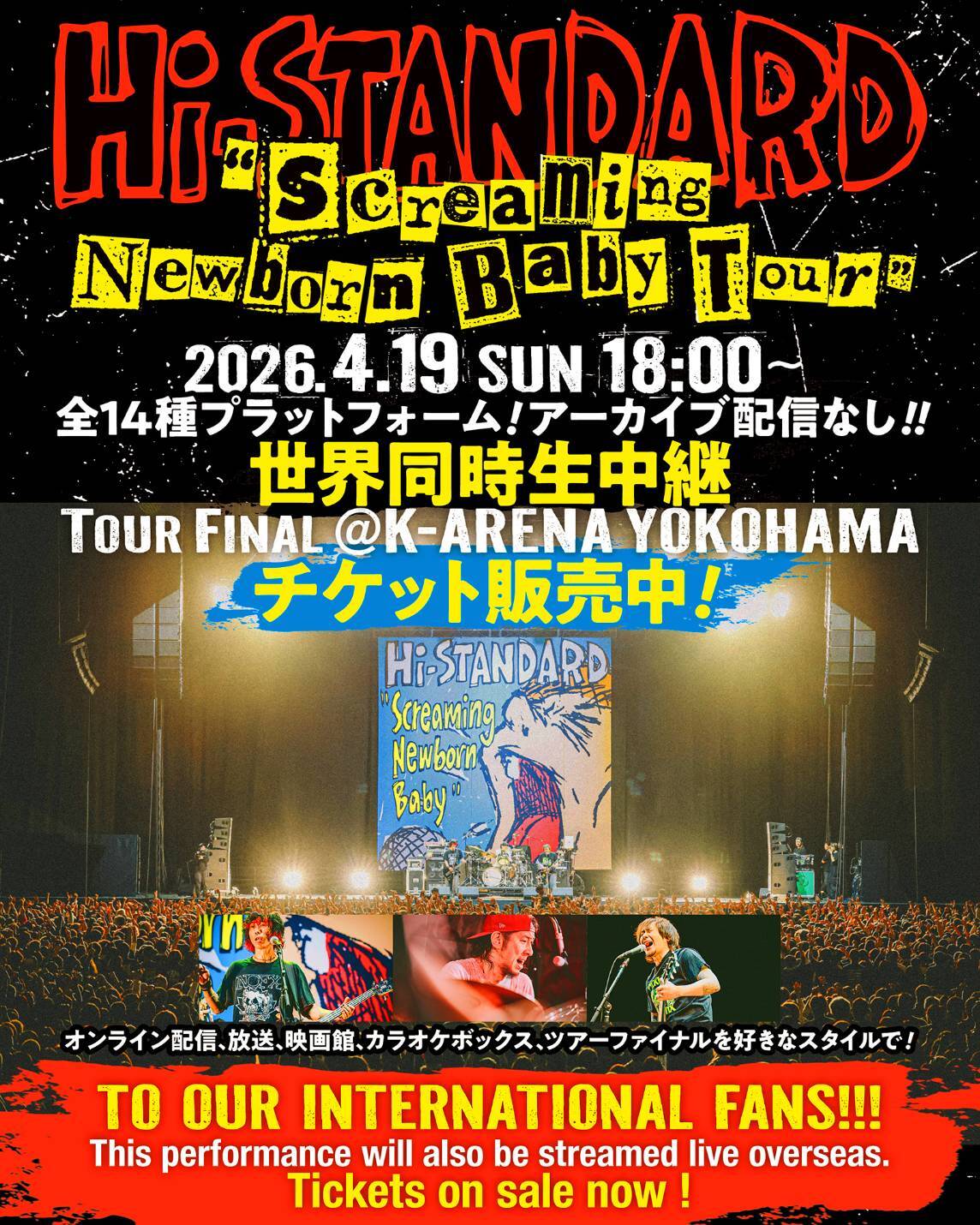 ★Hi-STANDARD "Screaming Newborn Baby Tour" 4月19日(日) Kアリーナ横浜公演 全世界生中継!