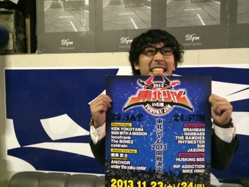その時難波さん見に来てくれて、難波さんが被災地で東北JAMやりたいっていう思いから、地元の人に協力して欲しいってことで僕がOneparkでやったこともあり一緒にやりましょうって。