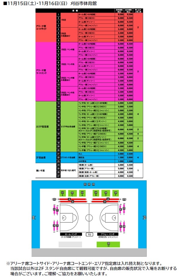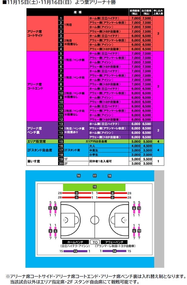 ※「チーム主管試合」のチケット料金・席図は各クラブの公式HPおよびSNS等でご確認ください。