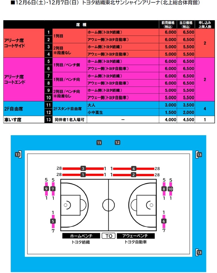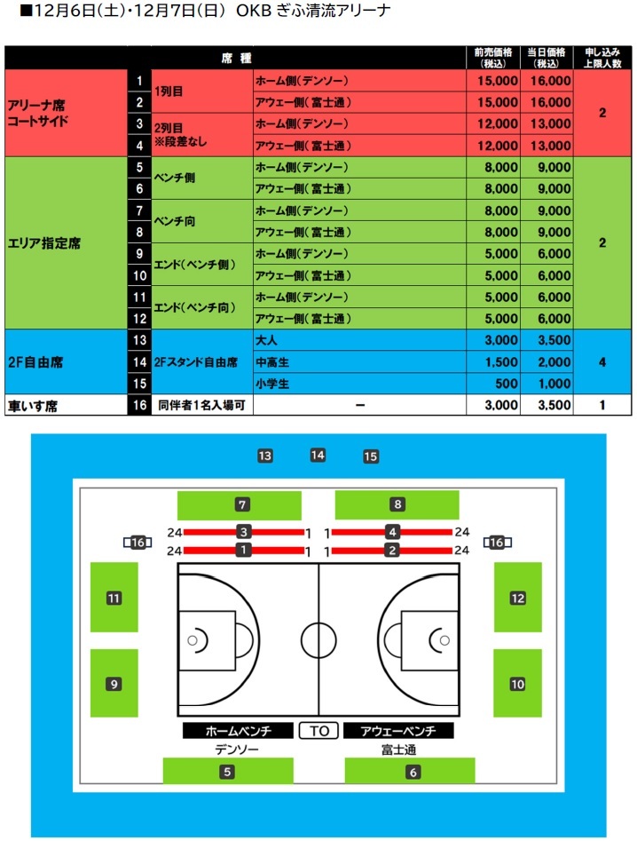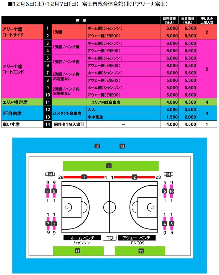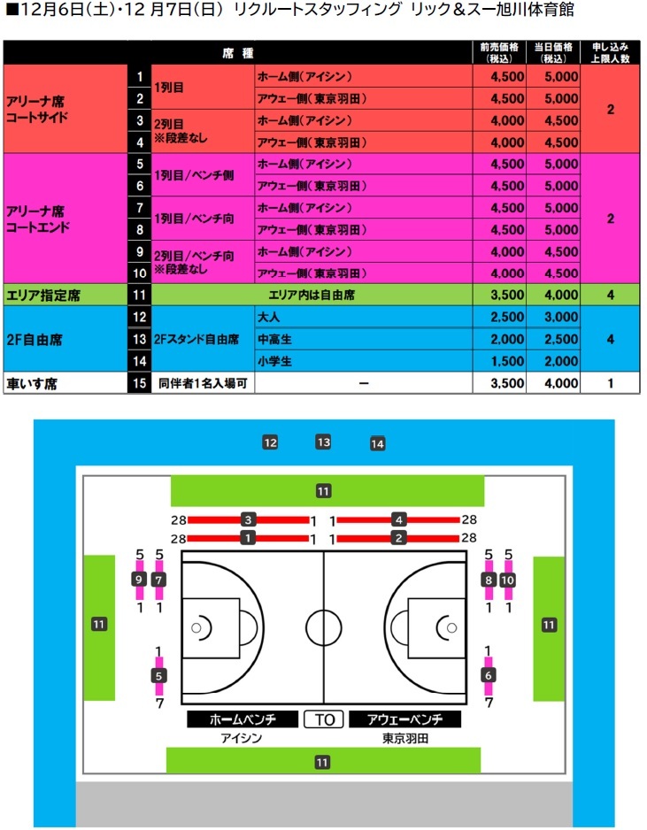 アリーナ席図/料金表・発売情報