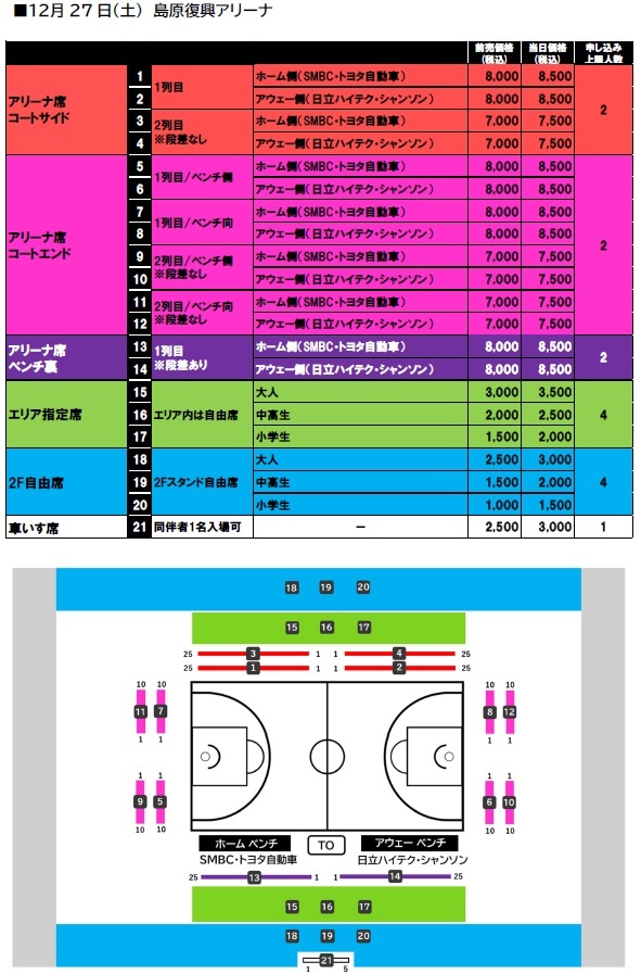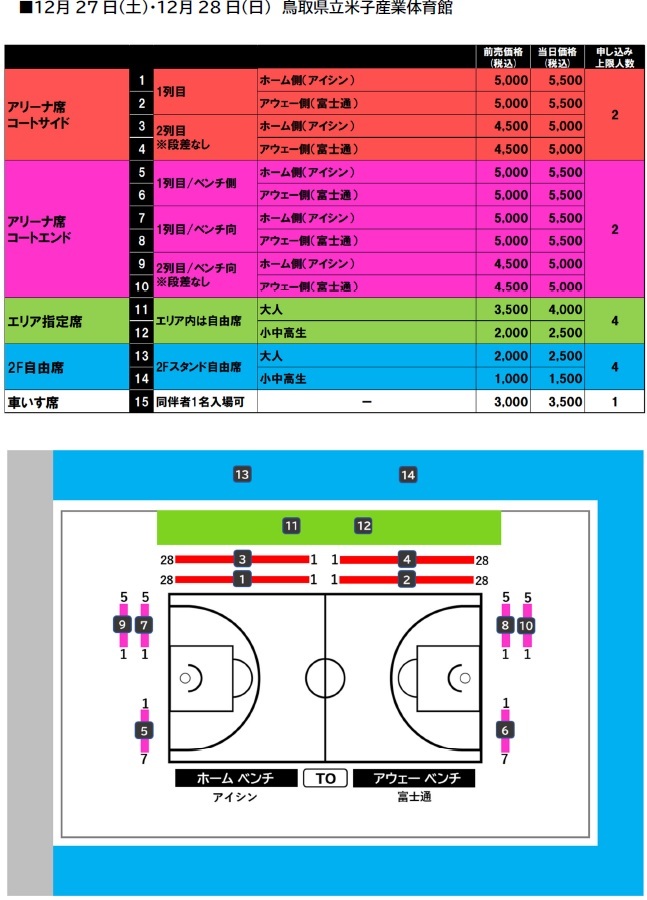 ※「チーム主管試合」のチケット料金・席図は各クラブの公式HPおよびSNS等でご確認ください。