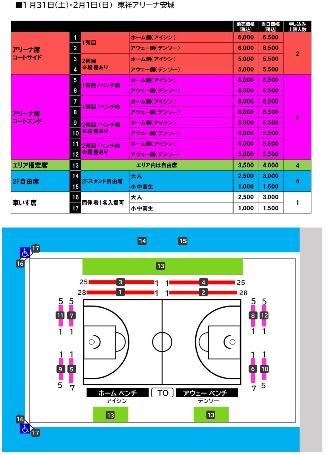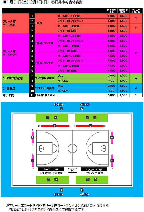 ※「チーム主管試合」のチケット料金・席図は各クラブの公式HPおよびSNS等でご確認ください。